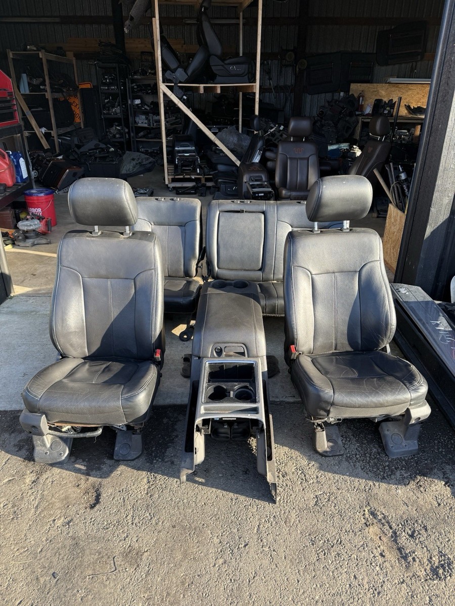 2011–2016 Ford F150 F250 F350 F450 Lariat Seats Set Black Leather Crew Cab. OEM fit, premium leather upholstery, factory mounting points, and complete front & rear seat replacement. Upgrade your truck interior today.